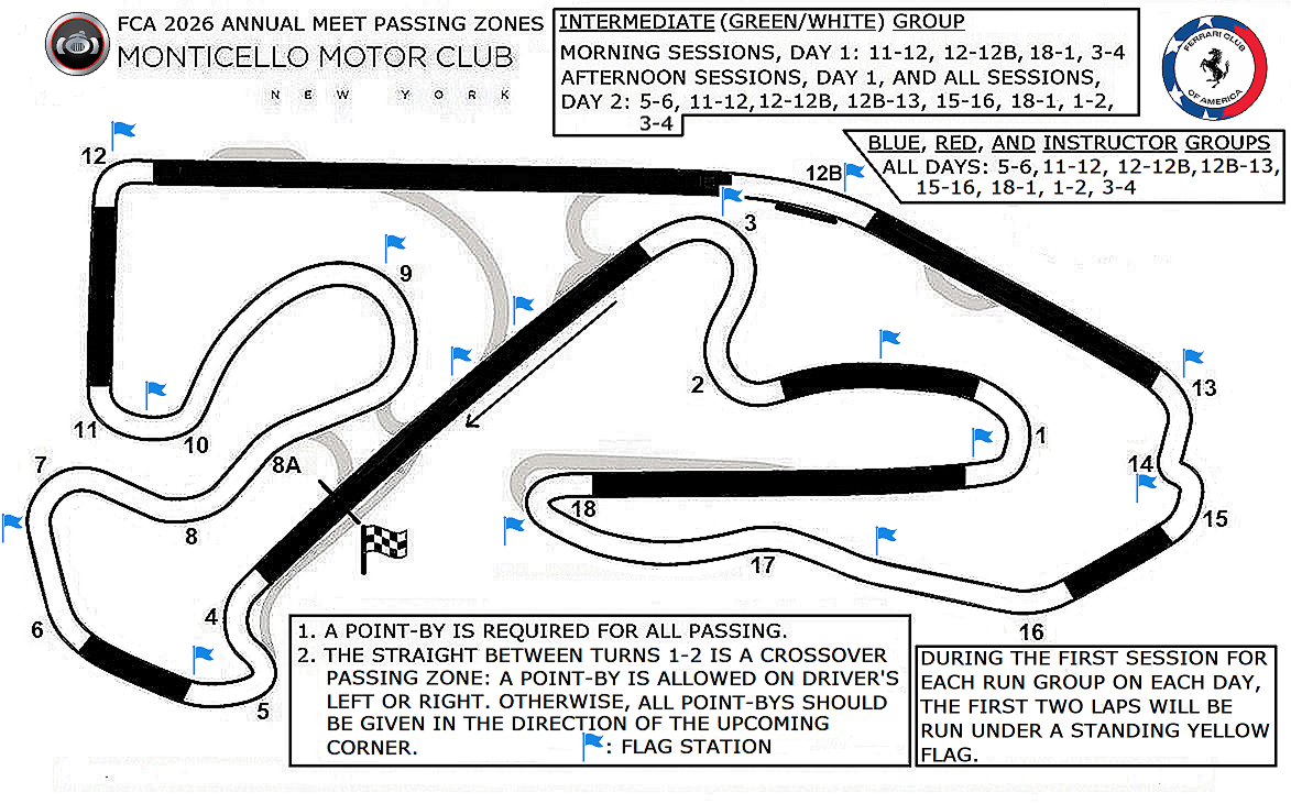 ● should carefully review the passing zones map before arriving at the track (Download the 2026 FCA